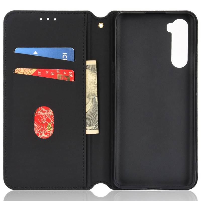 Uw OnePlus Nord is ongehoord met de diamant-textuur kunstlederen flip cover die de telefoon in stijl beveiligt.