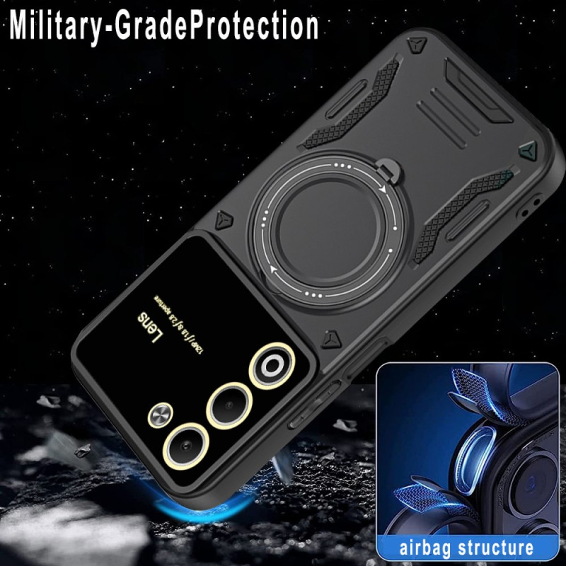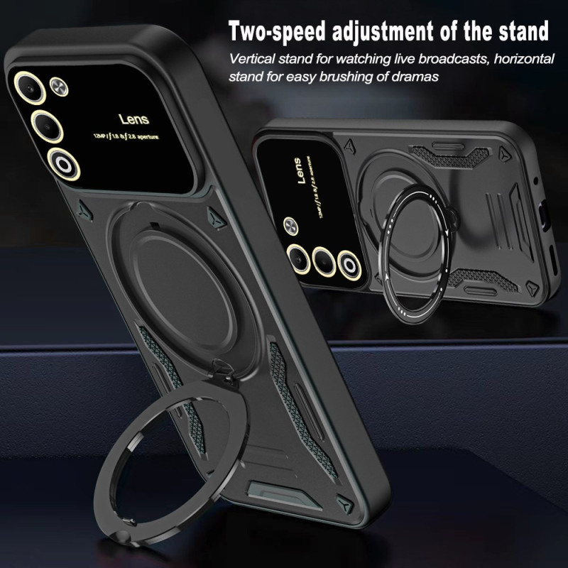 Bescherm je Oppo A5 5G met deze innovatieve hoes met een geïntegreerde roterende magnetische houder. Geniet van versterkte dubbele bescherming in PC en TPU, MagSafe-compatibiliteit en volledige toegang tot alle functies.