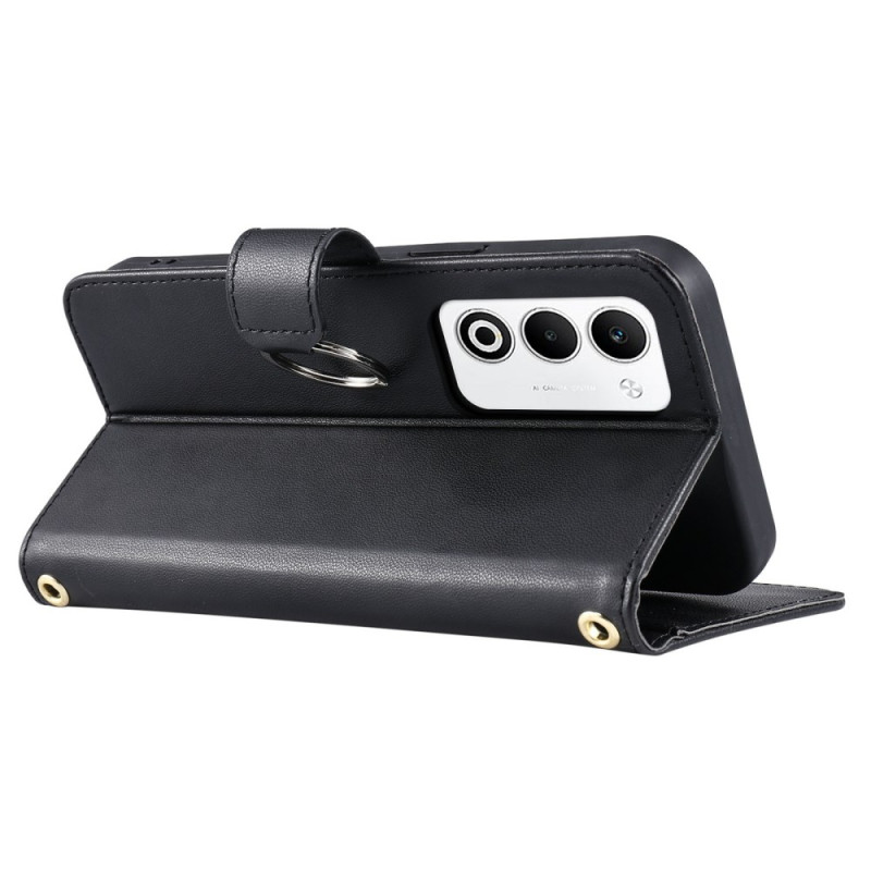 Verfijnde portemonnee hoes voor Oppo A5 5G / 4G van eersteklas PU leer met elegant ruitpatroon. Voorzien van een steunring, 5 kaartsleuven, muntzakje en twee afneembare schouderbanden voor veelzijdig dragen.