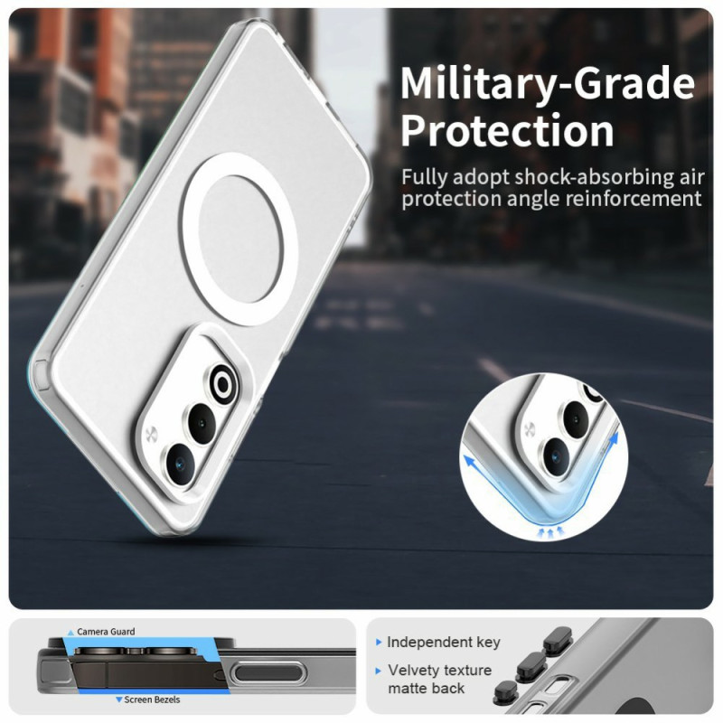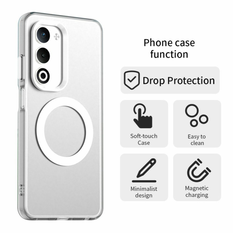 Bescherm je Oppo A5 5G met dit MagSafe-compatibele hoesje. Stootvast hybride ontwerp met magnetisch draadloos opladen. Verhoogde randen om scherm en camera te beschermen. Slank en stijlvol ontwerp voor dagelijks gebruik.