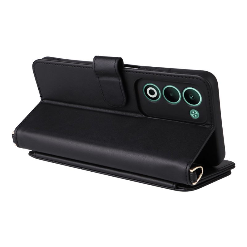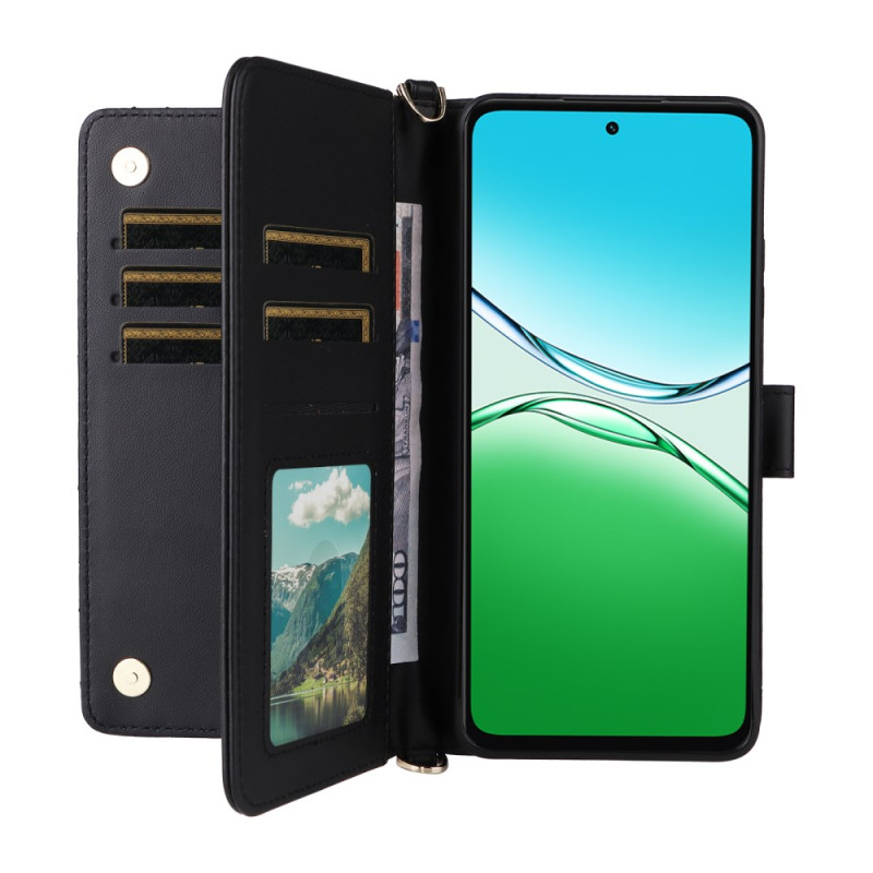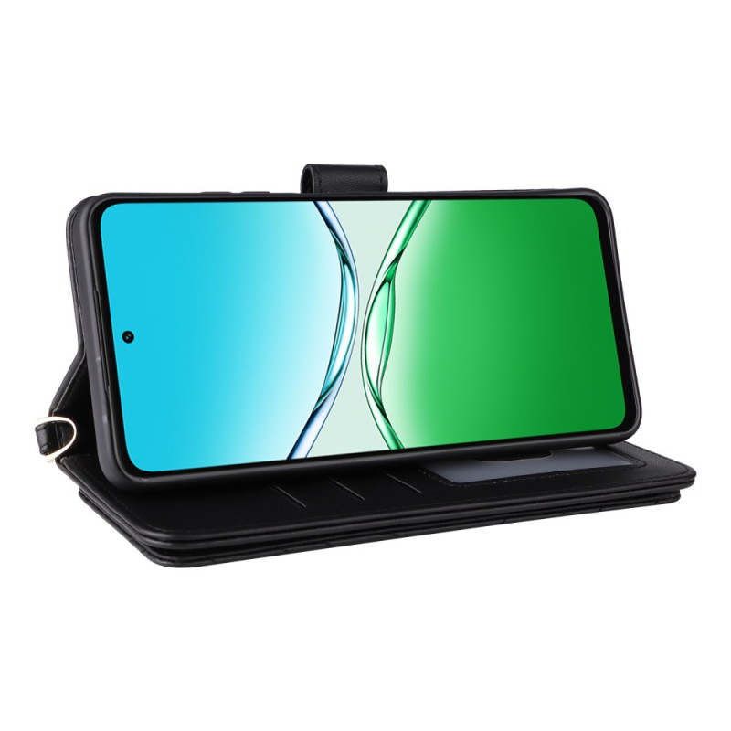 Multifunctionele hoes van eersteklas PU-leer voor Oppo A5 5G / 4G. Portemonnee-ontwerp met 6 kaartsleuven, verstelbare standaard en veilige magnetische sluiting. Wordt geleverd met verstelbare schouderriem en afneembare handriem voor veelzijdig dragen.