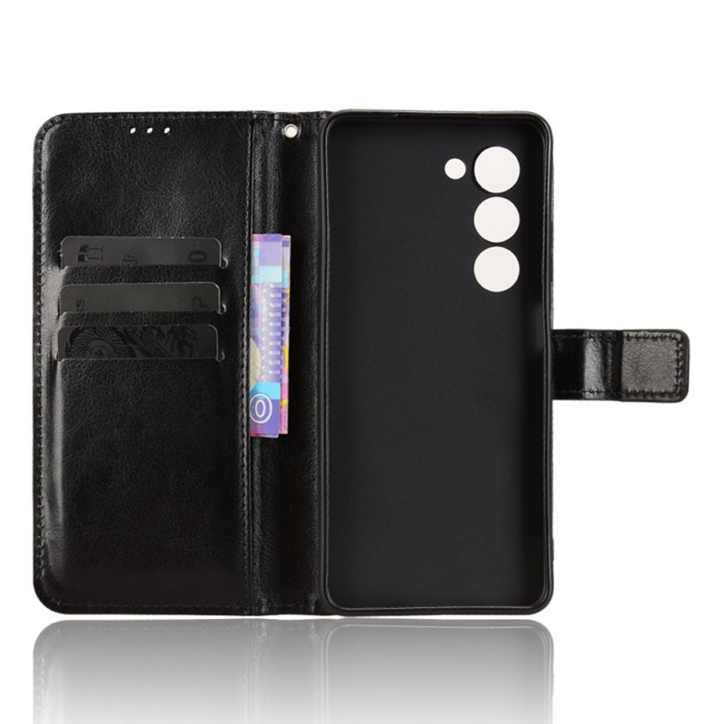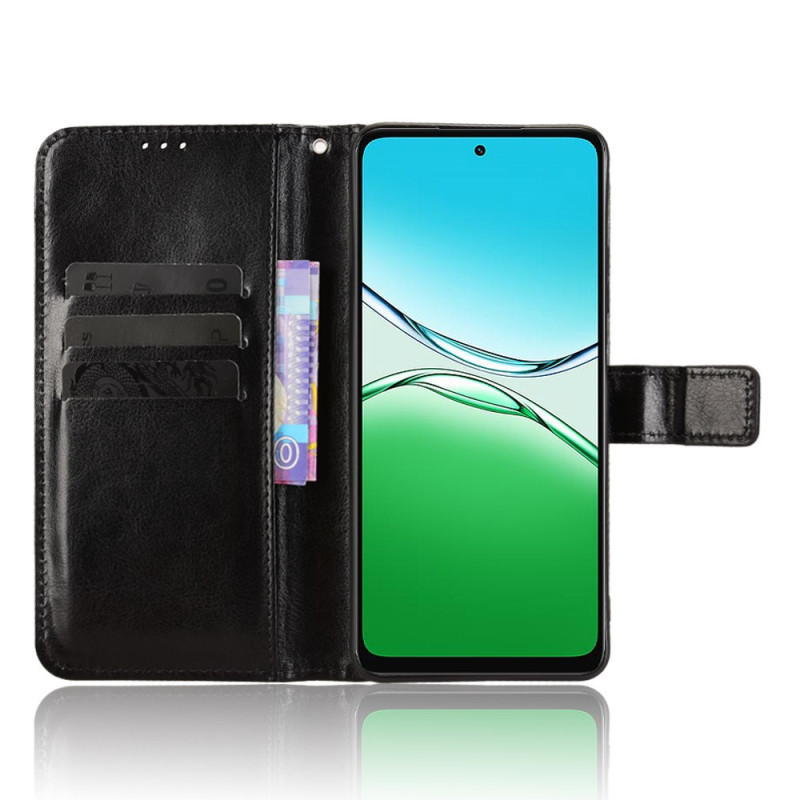 Stijlvolle portemonneehoes van eersteklas PU leer met crazy horse textuur voor je Oppo A5 5G / 4G. Voorzien van 3 kaartsleuven, een geldvak en een praktische handriem. Veilige magneetsluiting en handsfree functie.
