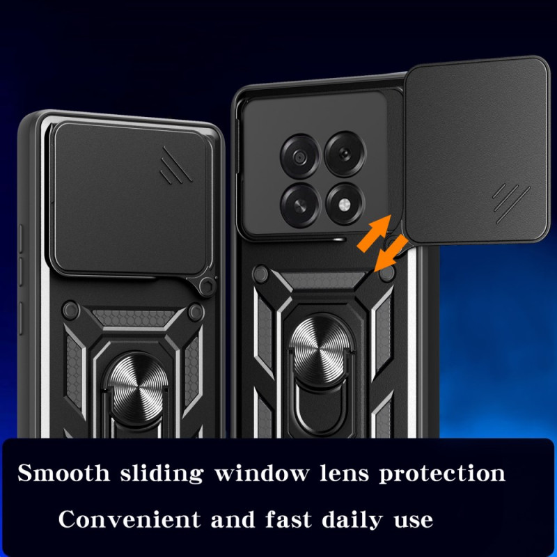 Complete militaire bescherming voor je Oppo A5 5G. Met een innovatieve verschuifbare cameradeksel, handsfree draaibare houder en compatibiliteit met magnetische autosteun. Krasbestendige constructie met optimale schokabsorptie.