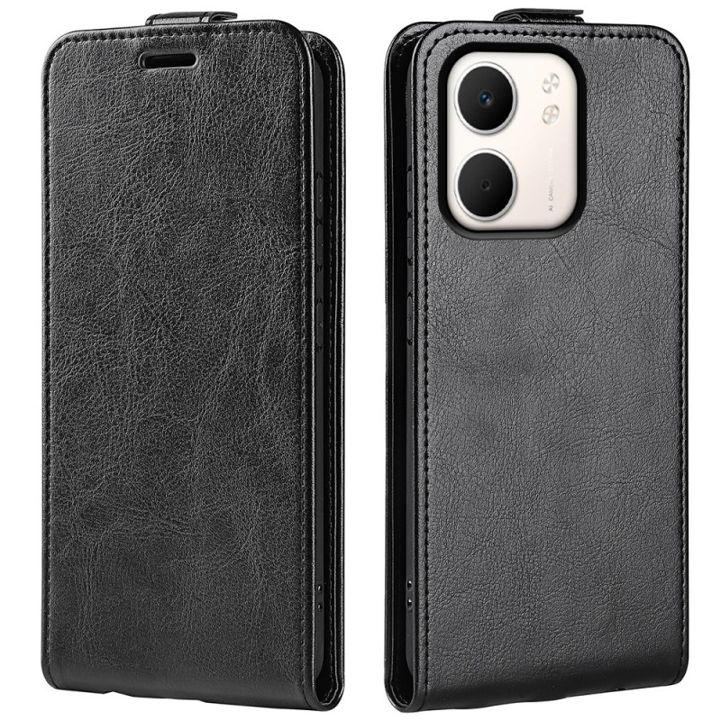 Ontdek deze stijlvolle PU lederen verticale flap case voor je Oppo A5X 4G. Het praktische ontwerp opent naar beneden voor gebruik met één hand, bevat een veilige kaarthouder en biedt volledige bescherming met magnetische sluiting.