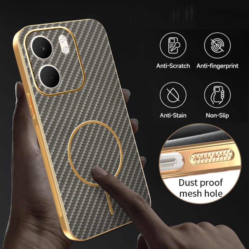 Bescherm je Oppo A5X 5G met deze zachte TPU-hoesje met een eersteklas elektrolytische afwerking. De stijlvolle koolstofvezeltextuur is bestand tegen vingerafdrukken, terwijl de verhoogde randen het scherm en de camera beschermen tegen krassen.