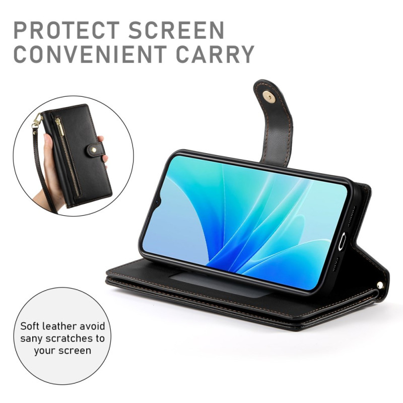 Multifunctionele tas die bescherming en functionaliteit combineert. Meerdere kaartsleuven, ritsvak en verstelbare schouderbanden voor handsfree dragen. Geïntegreerde opvouwbare standaard voor comfortabel kijken. Elegant, veilig ontwerp.