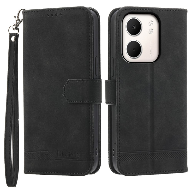 Ontdek de DIERFENG wallet case voor Oppo A5x, die elegantie en functionaliteit combineert. Met zijn gegraveerde lijnpatronen, flexibele binnenzijde, vakjes voor pasjes en contant geld en praktische handriem biedt deze hoes elke dag bescherming en comfort.