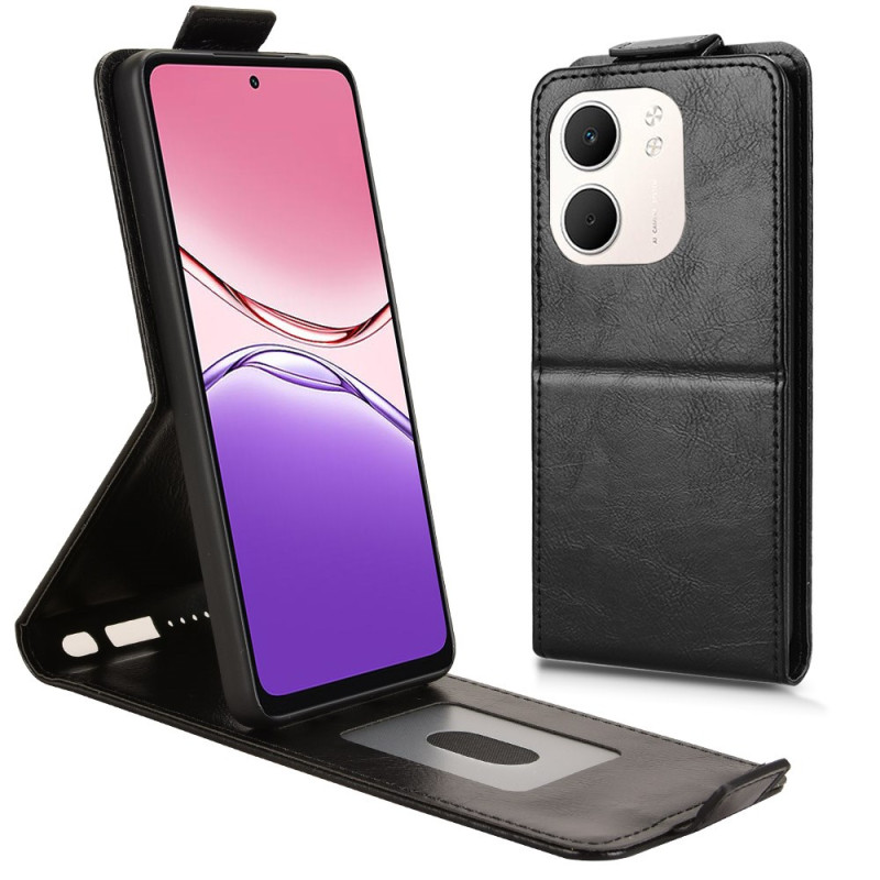 Protégez votre Oppo A5X 4G avec élégance grâce à cet étui à clapet vertical en cuir PU premium. Doté d'une fermeture magnétique sécurisée, d'un support pliable pratique et d'un porte-cartes intégré, il allie style et fonctionnalité au quotidien.