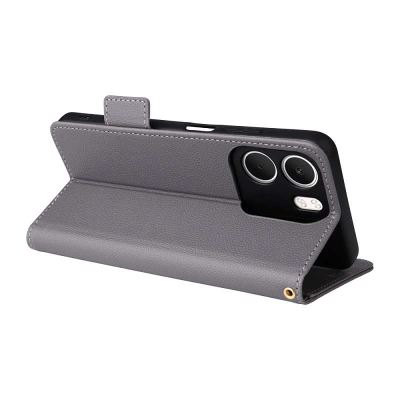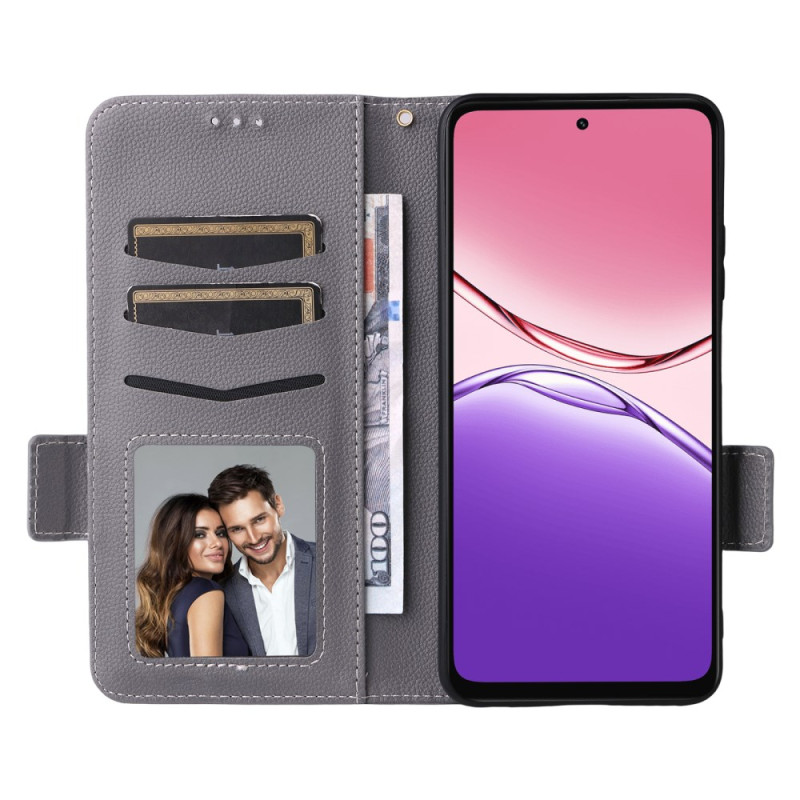 Ontdek deze elegante wallet case voor de Oppo A5X 4G, die stijl en functionaliteit combineert. Met een verfijnde lychee textuur, biedt het volledige bescherming terwijl het praktische compartimenten bevat voor je pasjes en contant geld.
