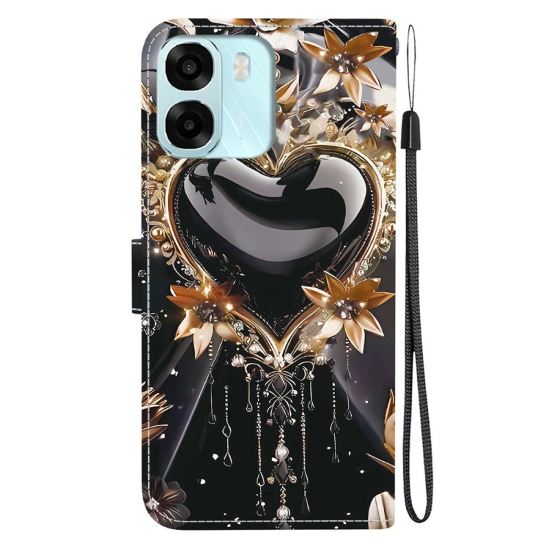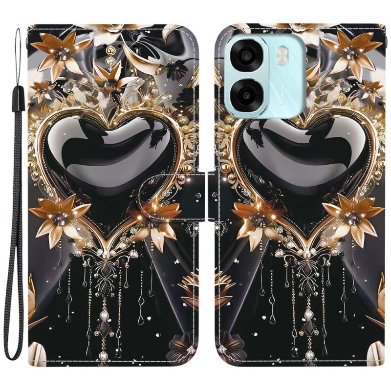 Verfraai je Oppo A6 met deze zwart met gouden portemonneehoes, die elegantie en alledaags gebruiksgemak combineert.
