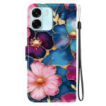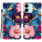 Bescherm je Oppo A6 5G / A6X 5G / 4G in stijl met deze portemonneehoes met blauw en gouden bloemmotief.