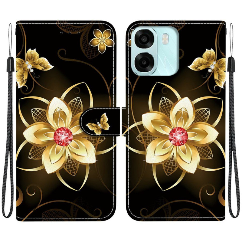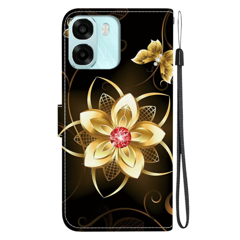 Bescherm je Oppo A6 5G / A6X 5G / 4G met deze portemonneehoes met klep met het Golden Flower-motief.
