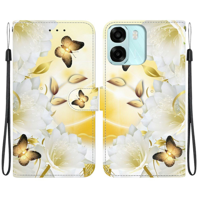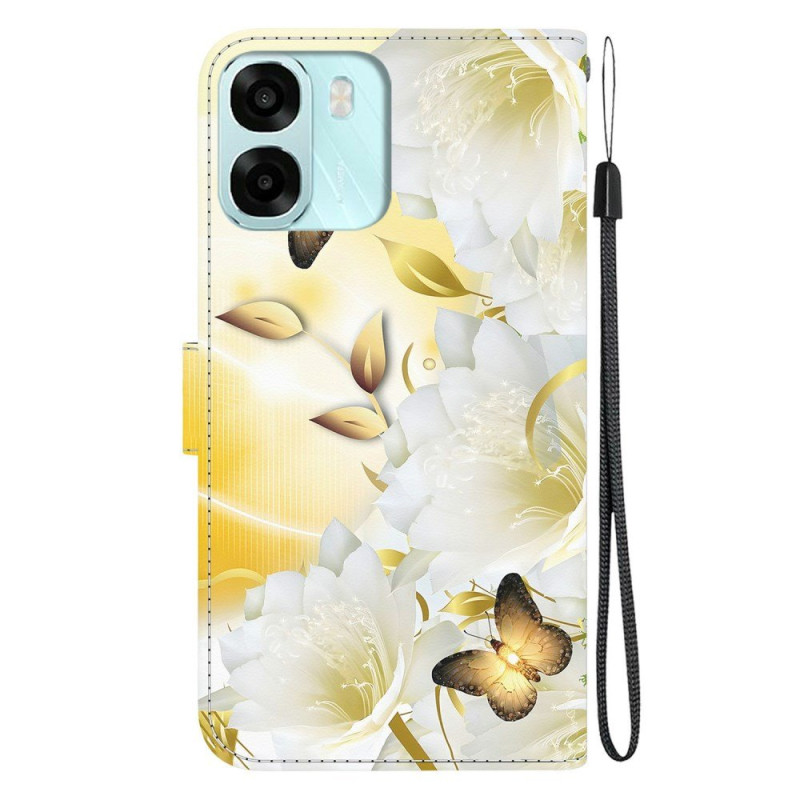 Dit portemonneehoesje voor de Oppo A6 combineert stijl en functionaliteit en verfraait je smartphone met zijn gouden vlinderprint.
