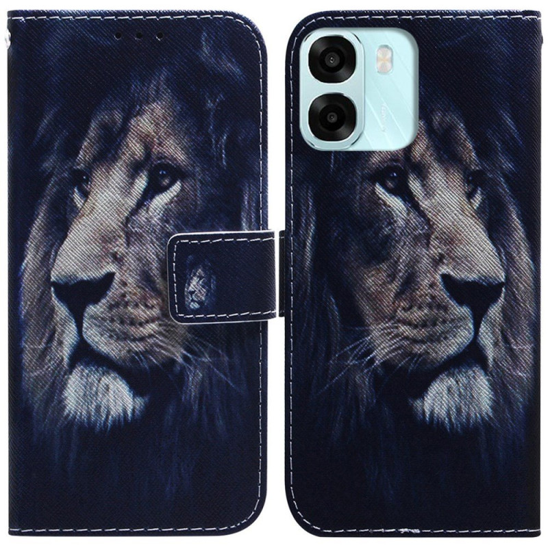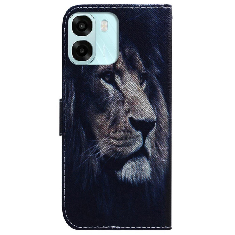 Bescherm je Oppo met deze wallet case met een motief van een wilde leeuw.