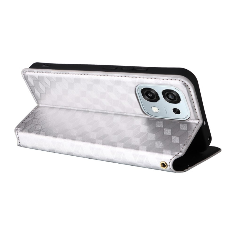 Stijlvol portemonnee hoesje met 3D ruitpatroon voor je Oppo A6 Pro 5G . Functioneel ontwerp met 2 kaartsleuven, verstelbare kijkstandaard en magnetische sluiting. Volledige 360° bescherming tegen krassen en vallen.