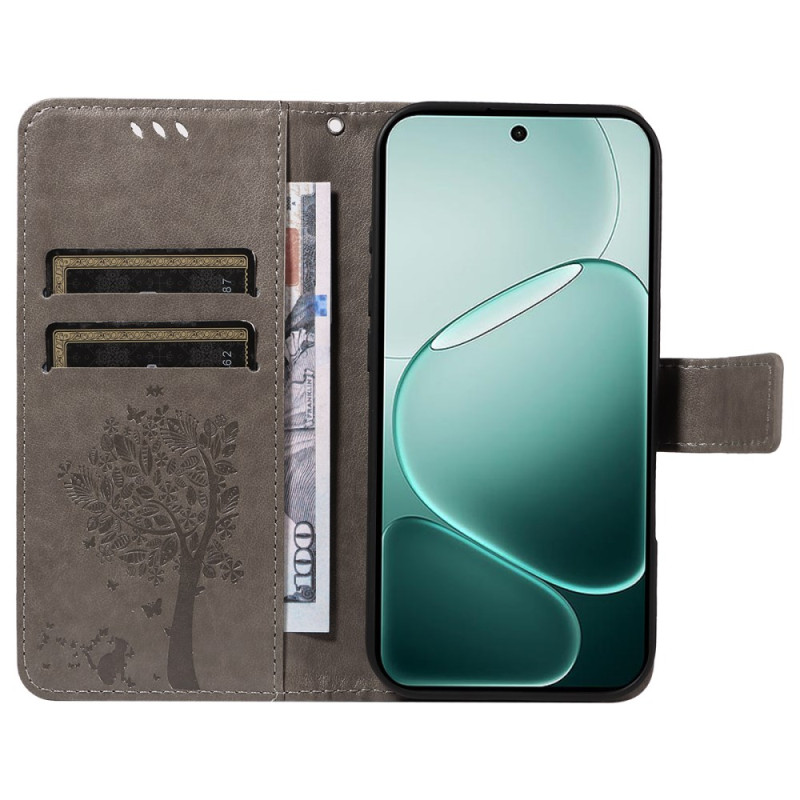 Découvrez cet élégant étui portefeuille pour votre Oppo A6 Pro 5G, alliant style et fonctionnalité. Avec son motif chat et arbre raffiné, ses emplacements pour cartes et son support intégré, protégez votre téléphone tout en gardant l'essentiel à portée de main.