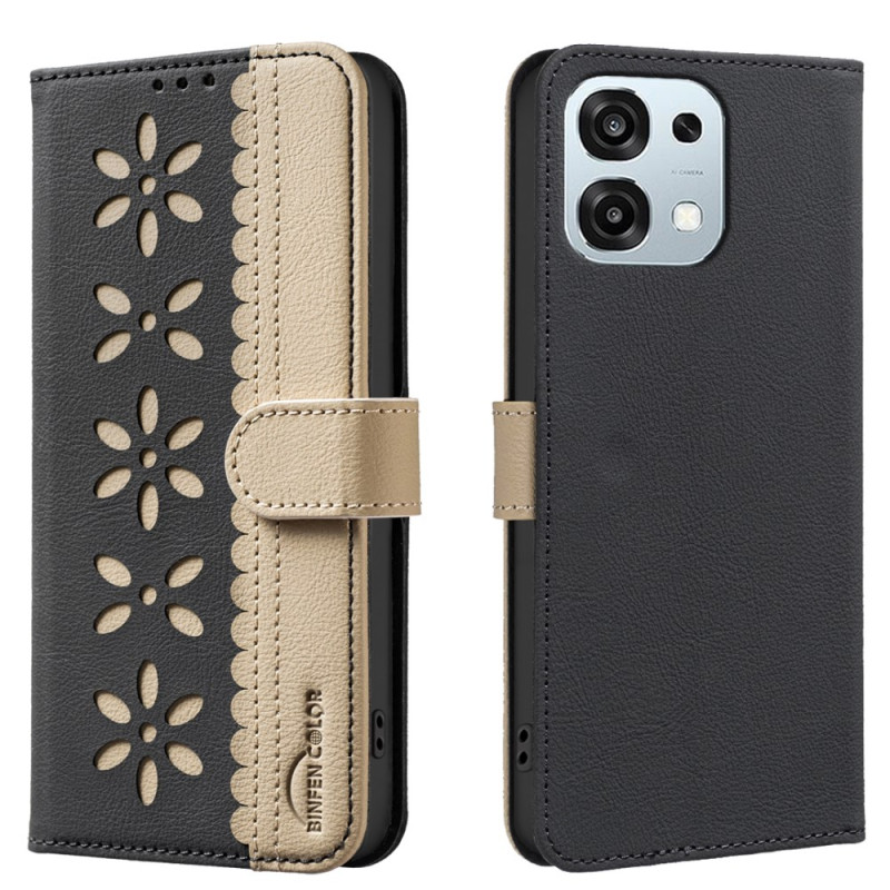 Bescherm je Oppo A6 Pro 5G in stijl met deze leren hoes met opengewerkt bloemmotief. Hij is voorzien van RFID-blokkeringstechnologie, beveiligt je gevoelige gegevens en biedt 3 kaartsleuven en 1 geldvakje.