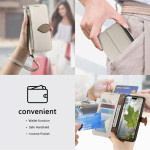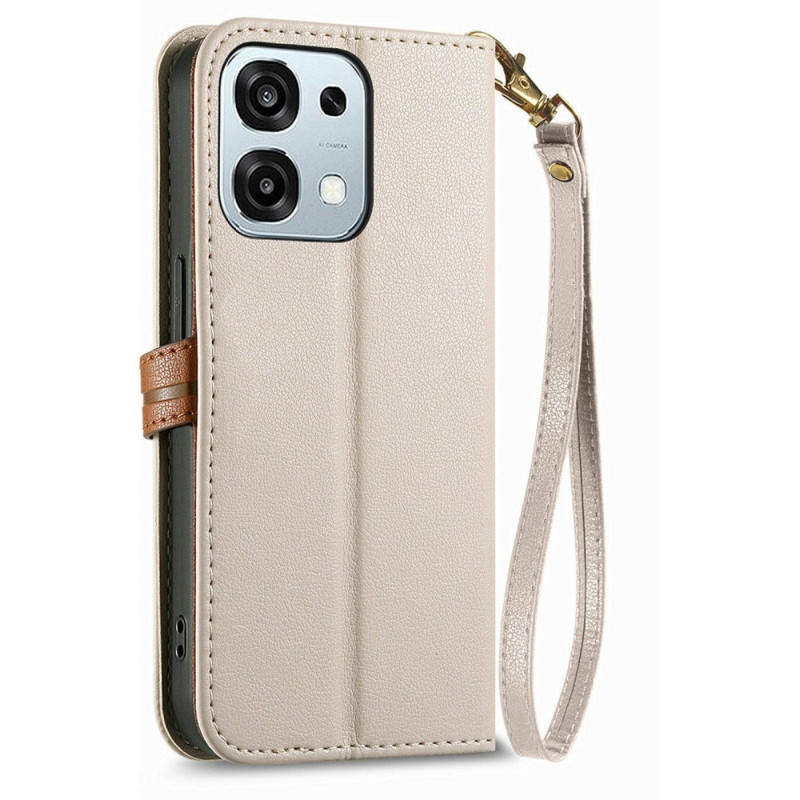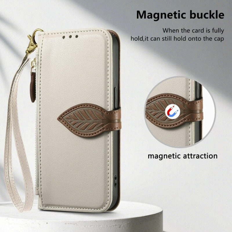 Elegante PU lederen hoes met magnetische bladsluiting voor Oppo A6 Pro 5G / 4G. Voorzien van 3 kaartsleuven, 1 geldvak en een extern ritsvak. Geïntegreerde standaard voor handsfree kijken en afneembare handriem.