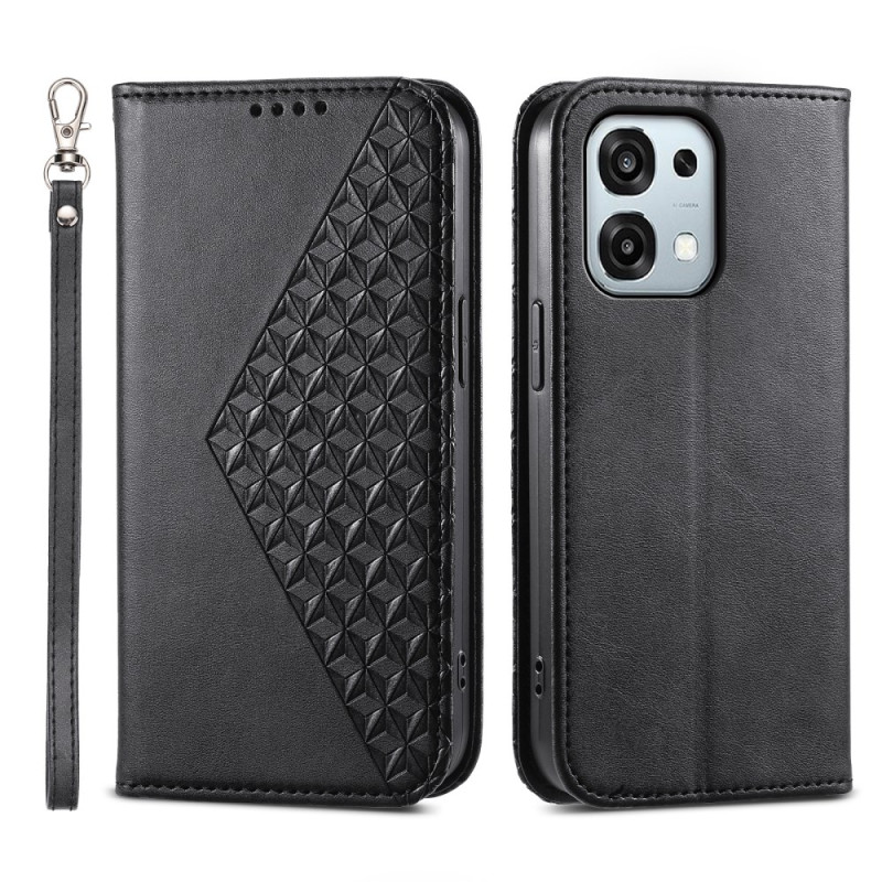 Elegante portemonneehoes met kalfslederen textuur voor je Oppo A6 Pro 5G / 4G. Geraffineerd ontwerp met ruitpatroon, geïntegreerde kaartsleuven en geldvakje. Inclusief veilige magneetsluiting, standaardfunctie en praktische handriem.