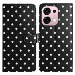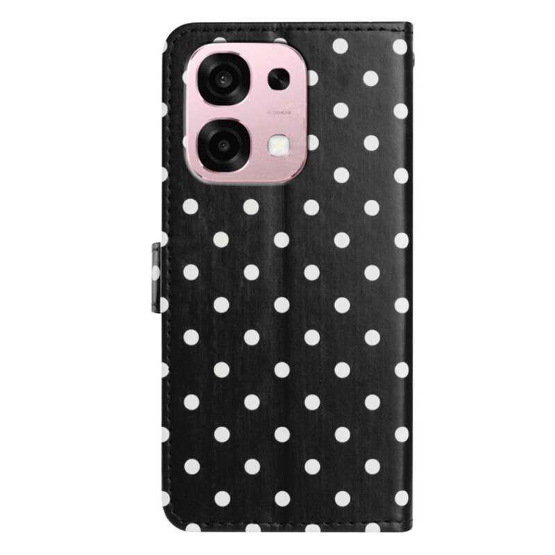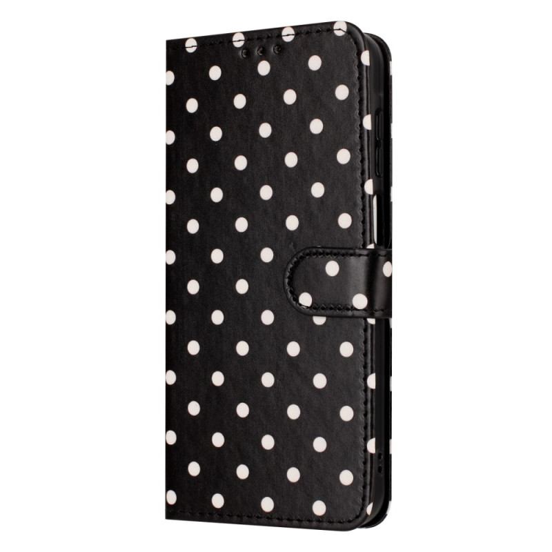 Stijlvolle portemonneehoes met stippenpatroon voor je Oppo A6 Pro 5G / 4G. Praktisch ontwerp met verstelbare houder, 3 kaartsleuven en veilige magnetische sluiting. Volledige bescherming tegen krassen en vallen in hoogwaardig PU-leer.