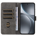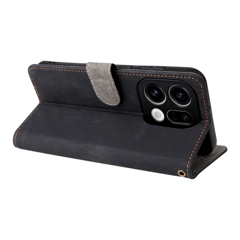 Stijlvolle portemonneehoes voor Oppo Find X9 5G met geïntegreerde RFID-bescherming. Voorzien van 3 kaartsleuven, 1 ticketvakje en handsfree functie. Beveiligde magnetische sluiting en polsband inbegrepen voor gemakkelijk dragen.