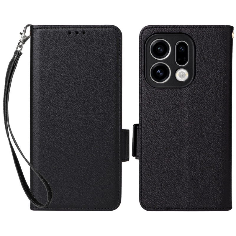 Stijlvolle portemonnee hoes voor Oppo Find X9 5G van PU leer met structuur. Met houderfunctie, magnetische sluiting en praktische handriem. Berg pasjes en contant geld veilig op en bescherm je telefoon elke dag.