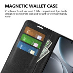 Stijlvolle portemonneehoes van PU leer met lycheestructuur voor Oppo Find X9 5G. Combineert bescherming tegen stoten, verstelbare ondersteuning en praktische opslag met 3 kaartsleuven. Veilige magnetische sluiting en flexibel TPU hoesje voor volledige bescherming.