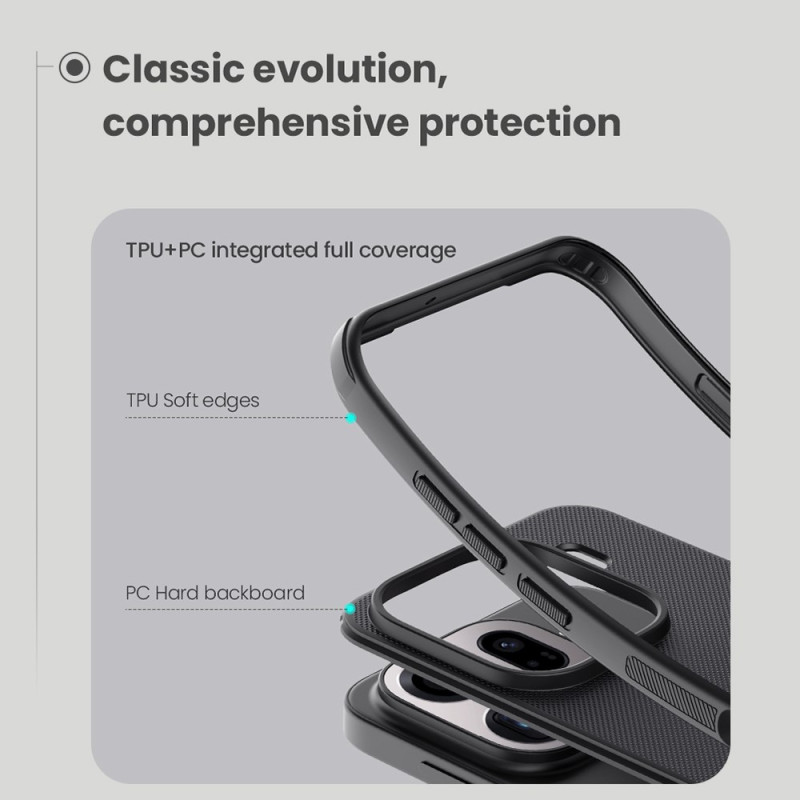 Ontdek de NILLKIN Frosted Shield Pro case, een combinatie van maximale bescherming en elegantie. De dubbele stijve en flexibele bescherming beschermt je Oppo Find X9 Pro 5G tegen alledaagse stoten. Antikras mat oppervlak voor een vlekkeloze look.