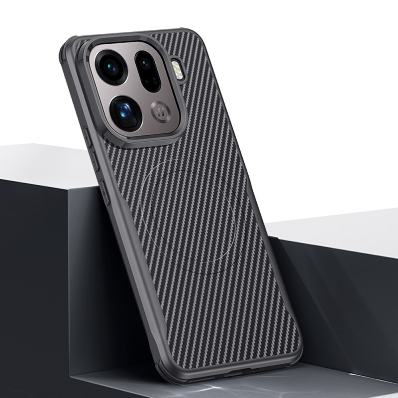Bescherm je Oppo Find X9 Pro 5G in stijl met deze hoogwaardige MagSafe-compatibele hoes. Hij is gemaakt van getextureerd koolstofvezel met versterkte hoekbescherming en biedt maximale bescherming tegen stoten en krassen, terwijl al je magnetische accessoires toegankelijk blijven.