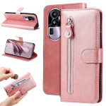 Deze hoes voor de Oppo Reno 10 Pro Plus 5G is ontworpen met een kalfslederen textuur, een ritsvak en een opvouwbare standaard.