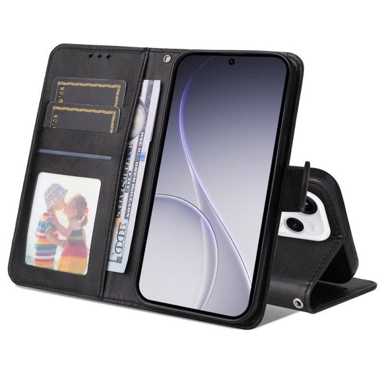 Elegante portemonneehoes van kalfsleer in PU met robuust TPU-omhulsel. Multifunctioneel ontwerp met kaartsleuven, handsfree kijkstandaard, veilige magneetsluiting en praktische handriem. Volledige 360° bescherming tegen stoten en krassen.