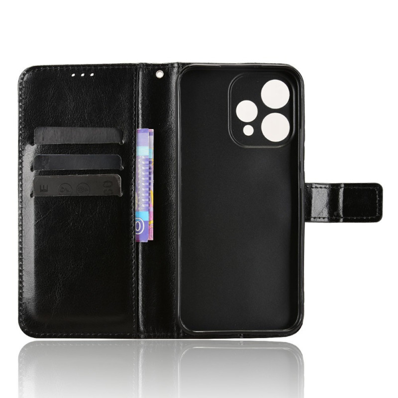 Stijlvolle portemonneehoes voor Oppo Reno 15 5G met verfijnde textuur. Voorzien van 3 kaartsleuven, 1 notitievak en een praktische polsband. Geïntegreerde handsfree functie en veilige magnetische sluiting...