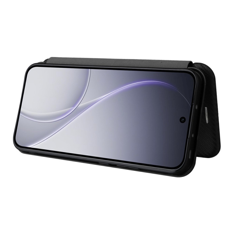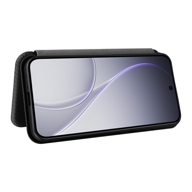 Stijlvolle hoes met anti-kras koolstofvezel textuur voor Oppo Reno 15 5G. Robuuste dubbellaagse bescherming, geïntegreerde kaartsleuf, veilige magnetische sluiting en handsfree ondersteuningsfunctie. Geraffineerd ontwerp combineert stijl en functionaliteit.