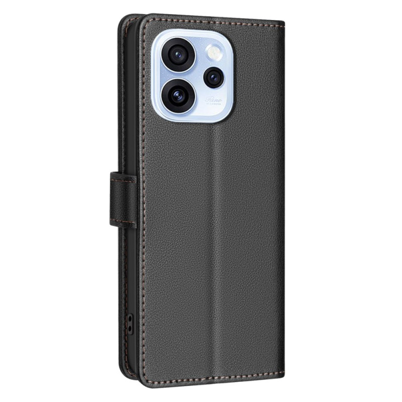 Hoogwaardige portemonneehoes van PU-leer met lycheestructuur en RFID-blokkering voor Oppo Reno 15 F 5G. Met 3 kaartsleuven, 1 geldvak en een veilige magnetische sluiting. Geïntegreerde handsfree ondersteuning voor comfortabel kijken.