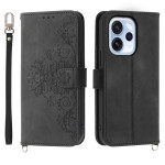 Elegant portemonnee hoesje voor Oppo Reno 15 F 5G met verfijnd bloemmotief. Voorzien van 3 kaartsleuven, een notitievakje en een praktische standaardfunctie. Wordt geleverd met schouderriem en handriem om hem gemakkelijk mee te nemen.