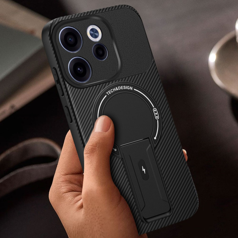 Protégez votre Oppo Reno15 F 5G avec cette coque hybride robuste. Dotée d'une texture fibre de carbone élégante, d'un support intégré rétractable et d'une technologie de dissipation thermique, elle offre une protection militaire contre les chocs tout en restant compatible avec les supports magnétiques de voiture.