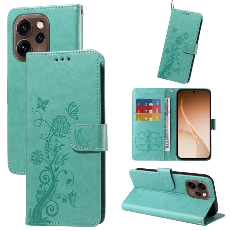 Ontdek deze elegante leren portemonneehoes voor Oppo Reno 15 Pro 5G, versierd met een prachtig vlinder- en bloemmotief. Met meerdere kaartsleuven, handsfree ondersteuning en volledige bescherming combineert hij stijl en functionaliteit.