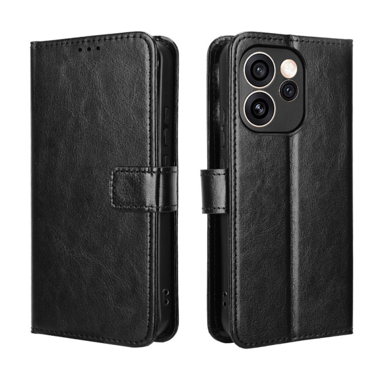 Elegante portemonneehoes van PU leer met crazy horse textuur voor je Oppo Reno 15 Pro 5G. Voorzien van 3 kaartsleuven, 1 notitievak, magneetsluiting en praktische handriem. Geïntegreerde handsfree ondersteuning voor optimaal comfort.