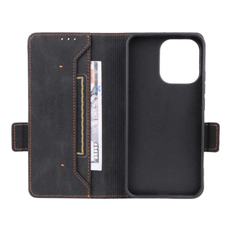 Elegante portemonneehoes van PU-leer met verfijnde metalen decoratie. Met vakjes voor pasjes en contant geld, multi-hoek kijkstandaard en volledige bescherming met magneetsluiting. Combineert stijl en functionaliteit voor dagelijks gebruik.