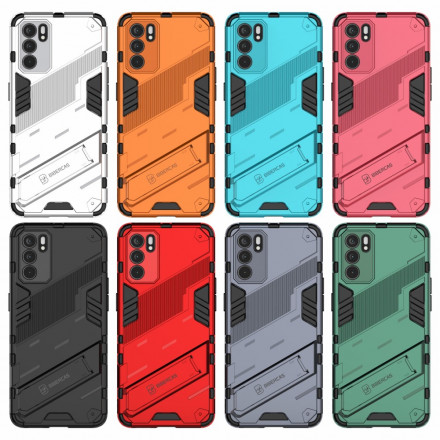 Une super coque ultra résistante pour le Oppo Reno 6 5G qui vient avec un support amovible permettant deux positions mains libres.