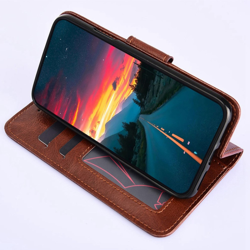 Dit hoesje voor de Oppo Reno 8 Pro, van retro kunstleer, biedt bescherming en portemonneefuncties.