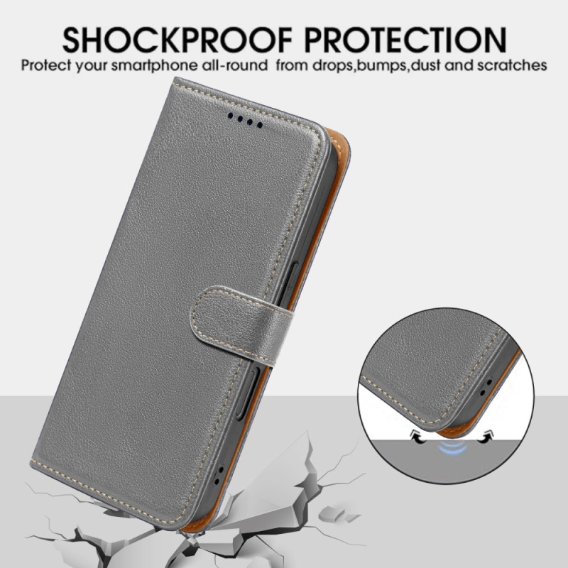 Ontdek onze lychee lederen portemonnee hoesje voor de Xiaomi Poco F7 Ultra 5G. Met RFID-bescherming, kaartsleuven, een standaardfunctie en een magnetische sluiting combineert deze case functionaliteit en elegantie voor optimale bescherming van je toestel.