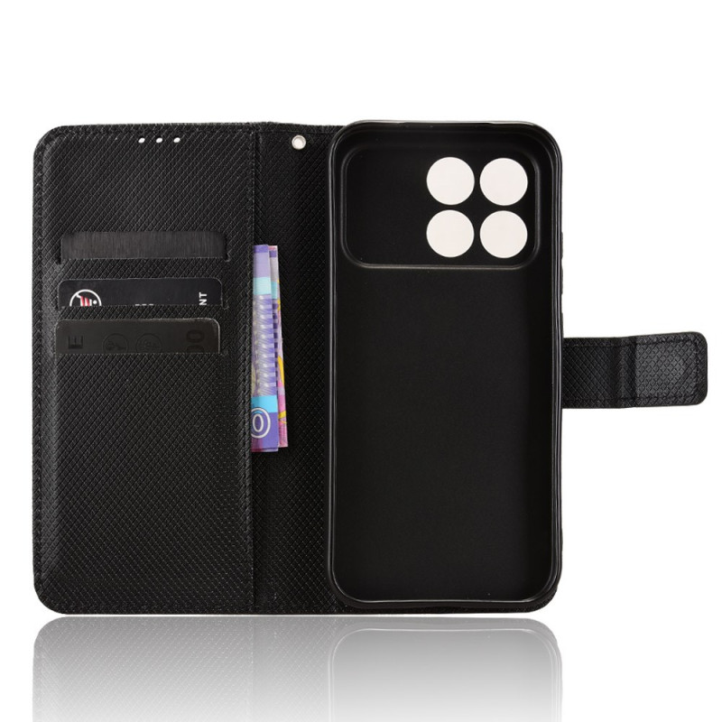 Elegant portemonnee hoesje met diamantstructuur voor je Xiaomi Poco F8 Pro. Met meerdere kaartsleuven, een geldvakje en een praktische handriem. Volledige bescherming en ondersteunende functie.