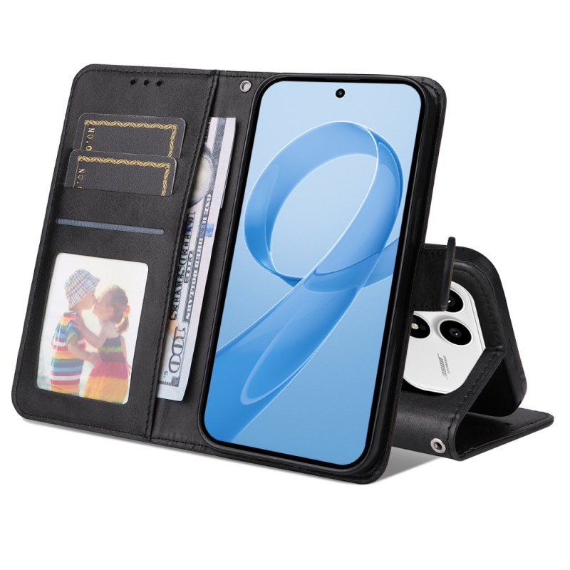 Elegante portemonneehoes van gestructureerd PU-leer met geïntegreerde kaartsleuven. Flapontwerp met veilige magneetsluiting en handsfree functie. Volledige 360°-bescherming dankzij de versterkte TPU-shell. Inclusief praktische handriem.