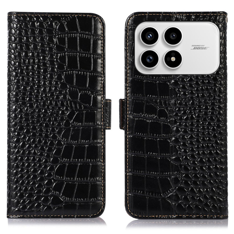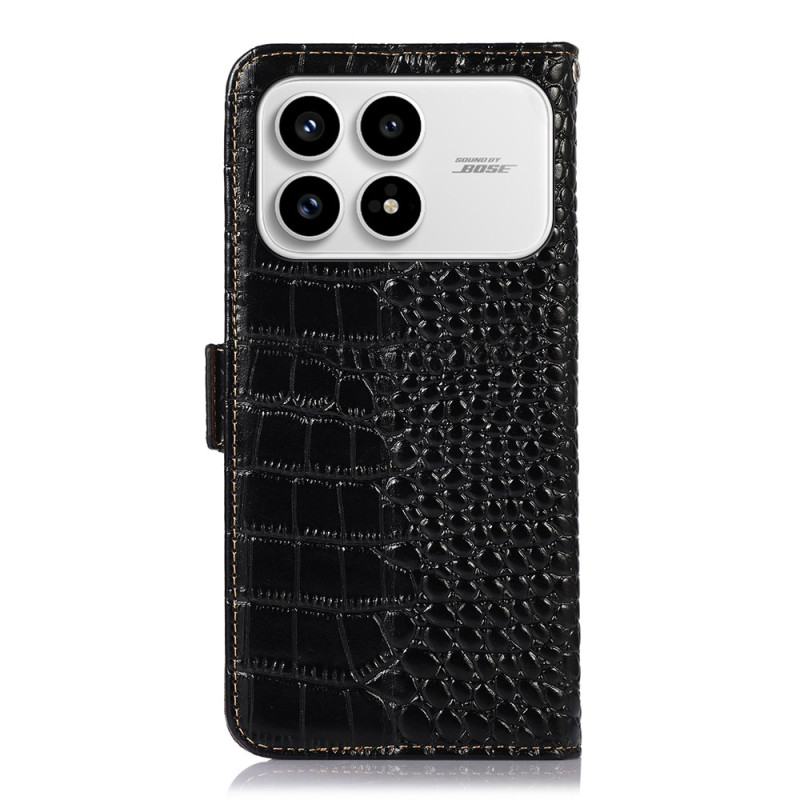 Ontdek onze elegante portemonneehoes van echt leer met krokodillenstructuur voor je Poco F8 Pro. Met RFID-blokkeringstechnologie, 3 kaartsleuven en een geïntegreerde houder combineert hij stijl en functionaliteit.
