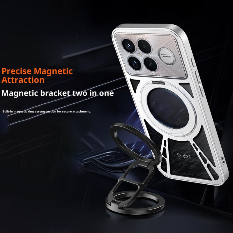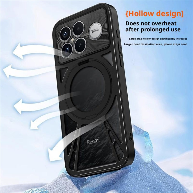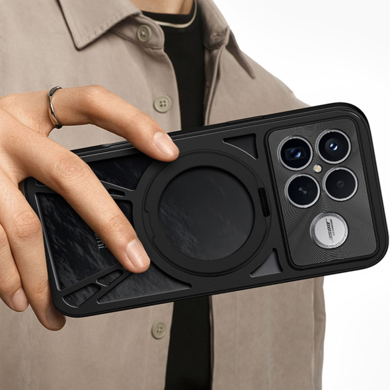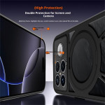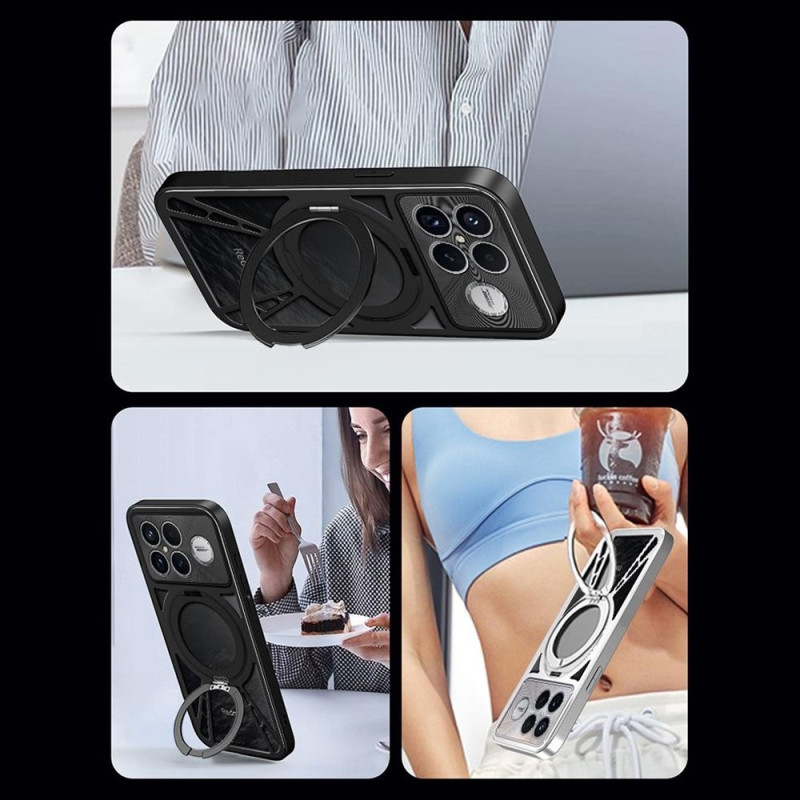 Bescherm je smartphone in stijl met deze ultrasterke hoes met geïntegreerde roterende houder en MagSafe-compatibiliteit. Het geperforeerde ontwerp zorgt voor optimale warmteafvoer, terwijl de versterkte randen het scherm en de camera beschermen tegen stoten en krassen.