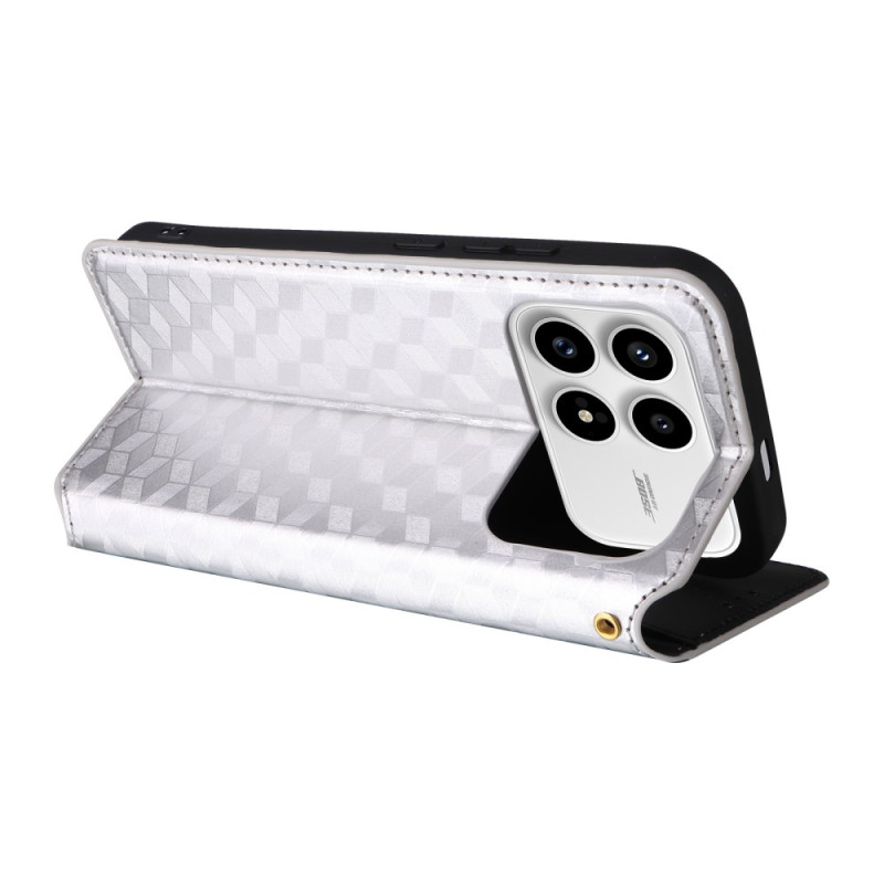 Bescherm je smartphone in stijl met deze geraffineerde portemonneehoes. Het heeft een 3D ruitpatroon en combineert stijl en functionaliteit met zijn kaartsleuven, verstelbare kijkstandaard en veilige magneetsluiting.
