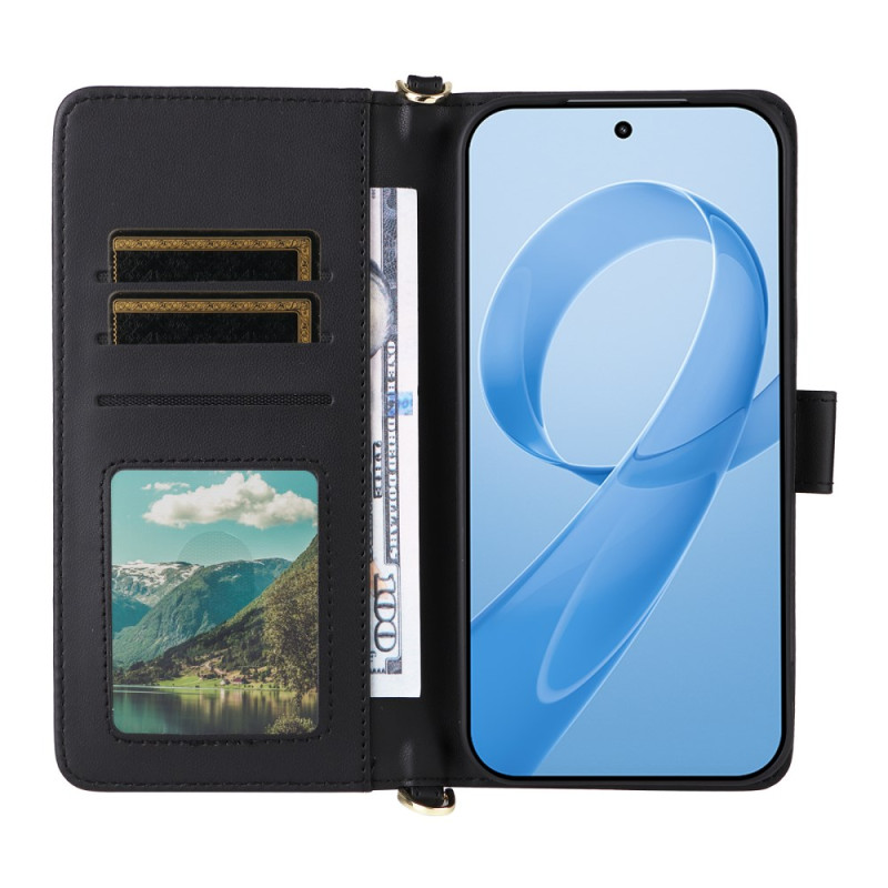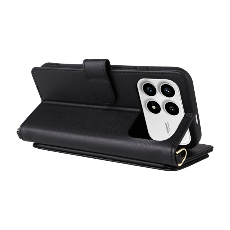 Elegante portemonnee met verstelbare standaard en afneembare schouderriem. Voorzien van 6 kaartsleuven en 1 notitievakje. Gemaakt van eersteklas PU-leer en slijtvast TPU voor volledige bescherming tegen stoten en krassen.
