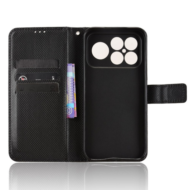 Ontdek onze elegante portemonneehoes met diamantstructuur voor je Poco F8 Ultra. Hij is voorzien van meerdere kaart- en geldvakken, een veilige magneetsluiting en een geïntegreerde opvouwbare standaard. Dankzij de meegeleverde handriem is hij gemakkelijk mee te nemen.