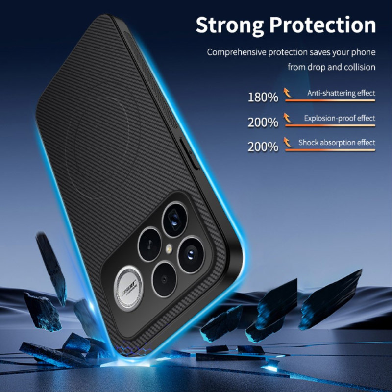 Protégez votre smartphone avec élégance grâce à cette coque compatible MagSafe. Sa texture fibre de carbone offre une prise antidérapante et anti-traces, tandis que sa conception robuste en PC et TPU assure une protection optimale contre les chocs et rayures.